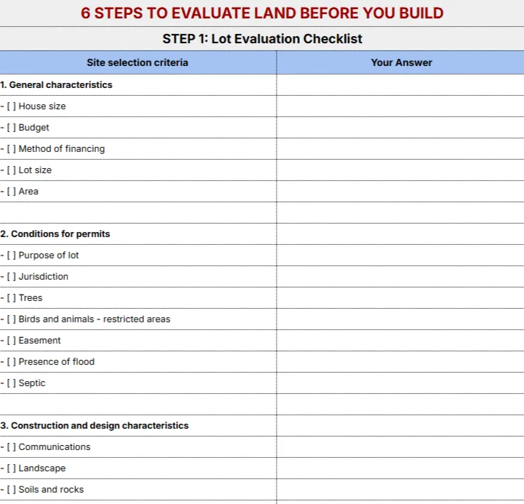 A complete analysis toolkit that gives you a professional-level understanding of any piece of land using our 6-step process - even if you've never evaluated property before.